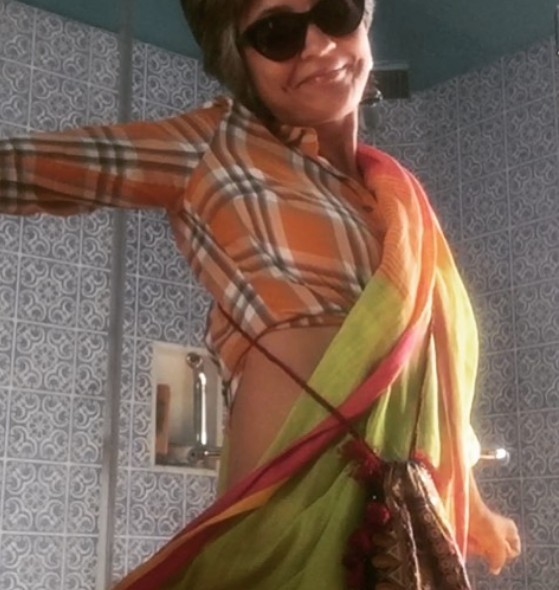When people say they’re not comfortable! Saris are very comfortable — we’ve just made a big hauvaa out of them — with all our safety pins and rigidly draped pleats and falls and petticoats and everything.